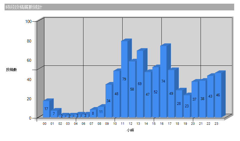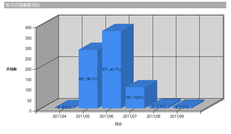各月份的投稿次數統計,這些您從來沒想過要了解的統計數據,或許能幫助您明年的研討會舉辦的更順利圓滿。![]()