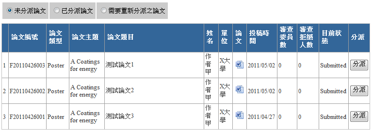 當總編輯收到作者繳交論文的郵件通知後,便可以進入系統進行論文的分派,並可以調閱投稿論文電子檔案。