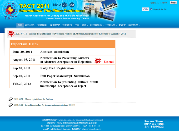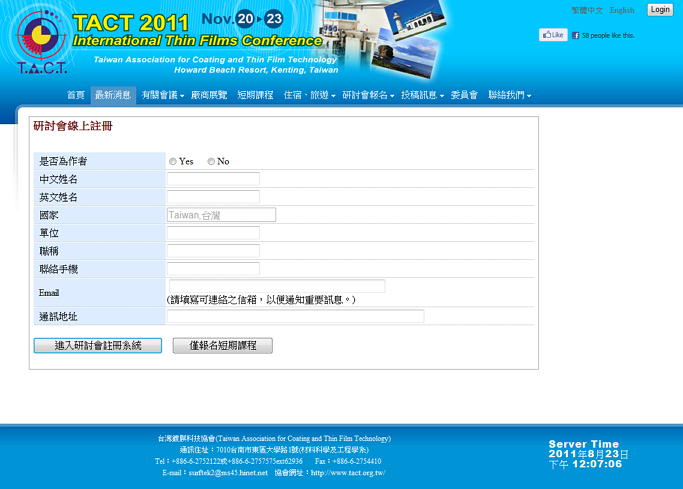 很榮幸,我們承接了台灣鍍膜科技協會(TACT)所舉辦的 TACT 2011 International Thin Films Conference 的E化工作,