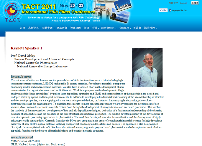 基於好評不斷,TACT在 2011年再接再厲舉辦了TACT 2011 International Thin Films Conference,