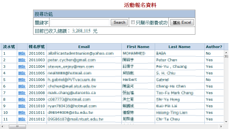 可以隨時匯出最新的報名資料 Excel 檔,以利後續利用。
