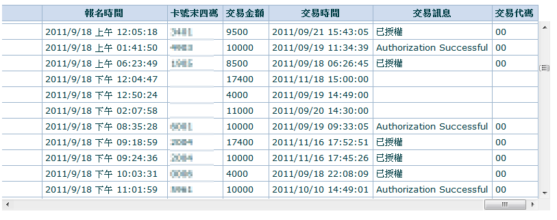 若與金流系統搭配,亦可即時看到刷卡的卡號、費用以及刷卡時間,方便與與會者核對。