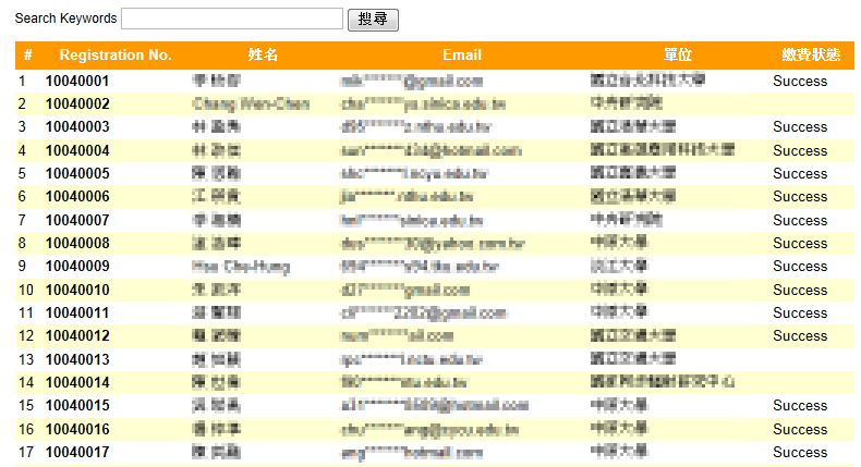 與會者可以透過公開查詢來查詢自己是否已經報名,以及繳費是否已經完成!